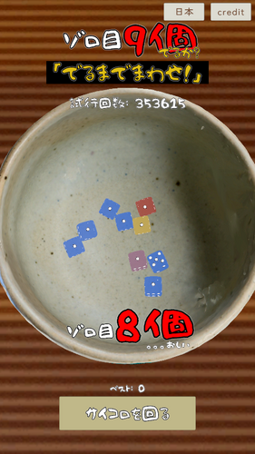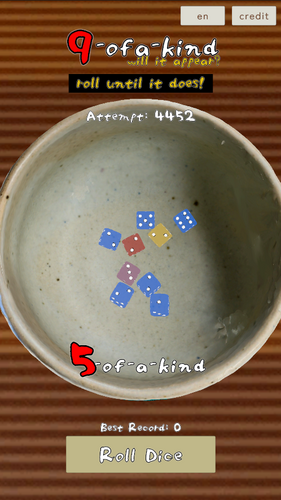 A simple dice-rolling game - roll the dice until you get 9-of-a-kind!